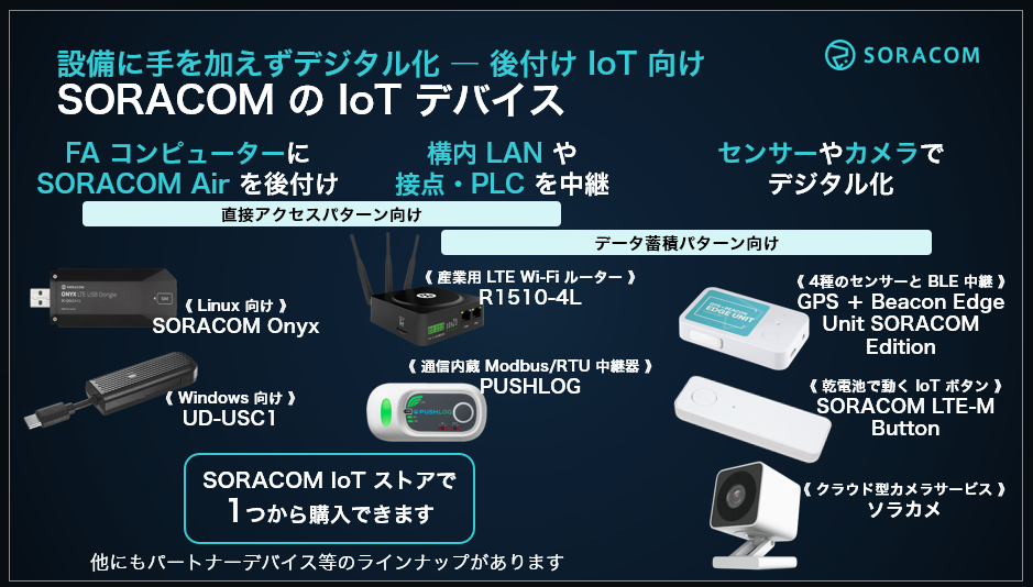 - 内容:遠隔監視の基礎整理/事例紹介/操作との違い/SORACOMでの導入手順