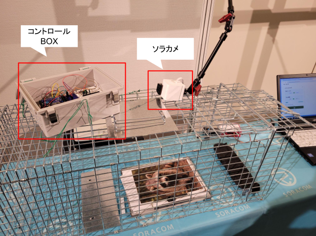 Discovery 2025の展示では、ソラカメを罠に設置し、リアルタイム画像をPCで確認していました。