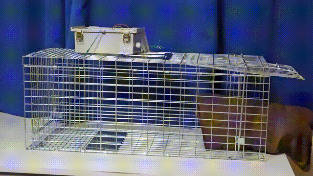 今回使用したのはアライグマなどを対象とした小型の箱罠ですが、同様の仕組みで大型の罠にも適用が可能です。