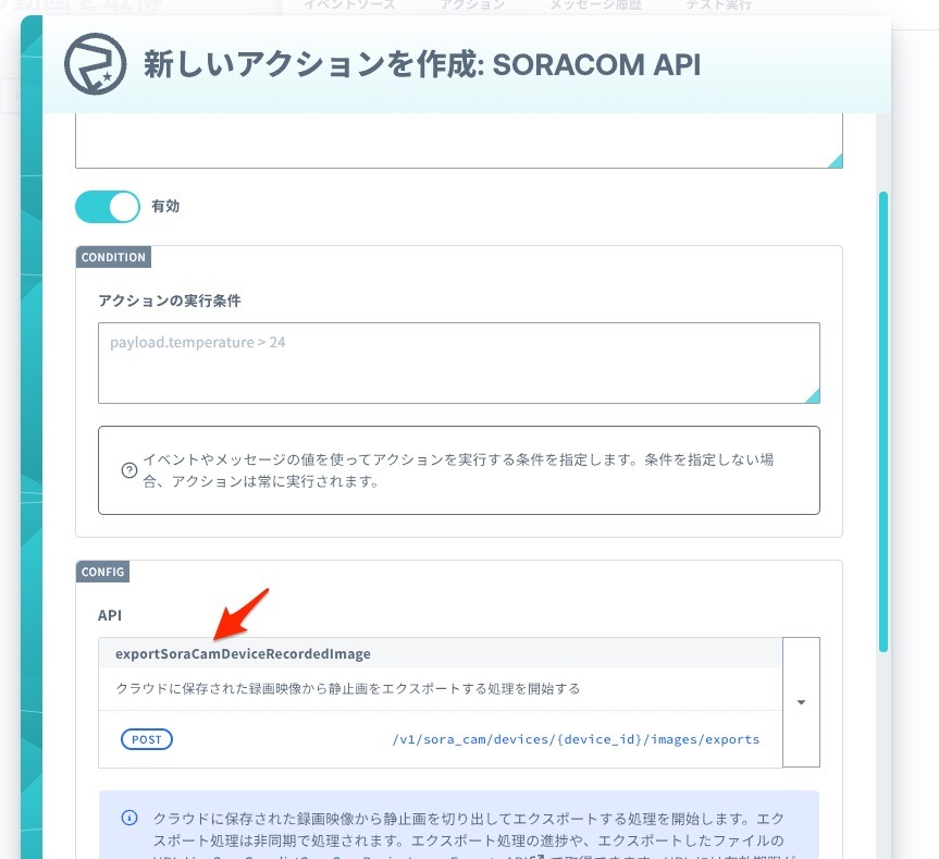 - SORACOM API アクション – 動画エクスポート開始リクエスト