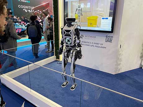 今年のMWCでは、人型ロボットや四足歩行ロボットの展示が会場の複数ホールで多く見られました。会場のあちこちでロボットが実際に歩いたり作業を行ったりするデモが行われており、AIとロボティクスを組み合わせた「Physical AI」というテーマが強く打ち出されている印象を受けました。